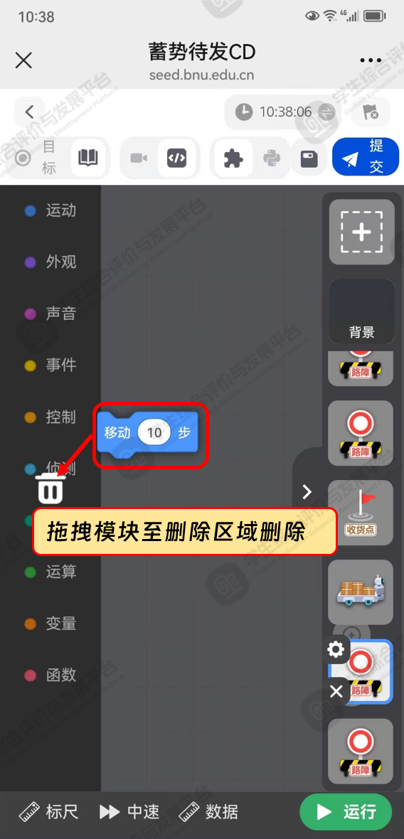 点击标记⑥【提交】按钮,可提交编程结果,提交后,该活动即可完成;